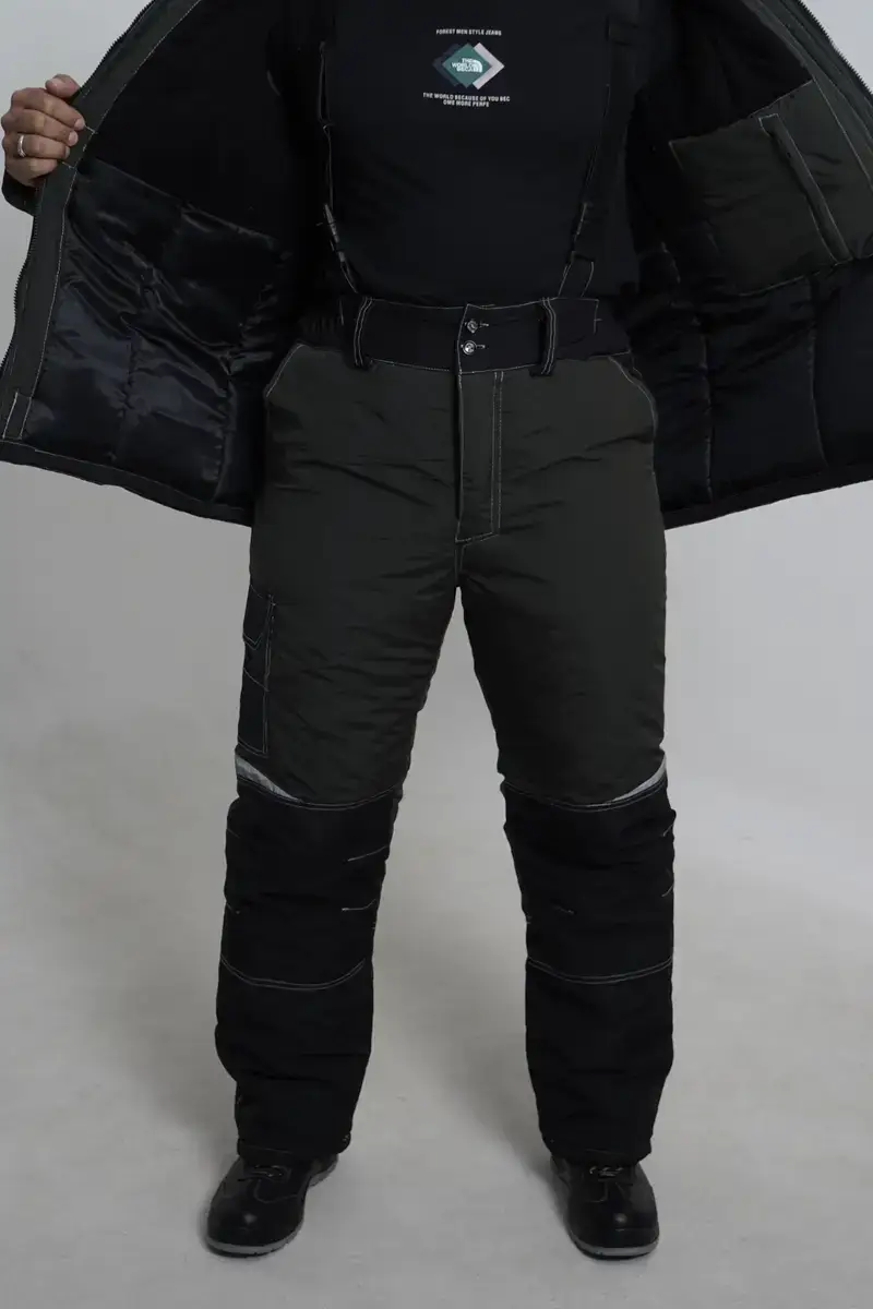 Features: Modern ergonomic design.Combined lining: fleece top, polyester bottom.Trousers with adjustable suspenders for comfortable fit.