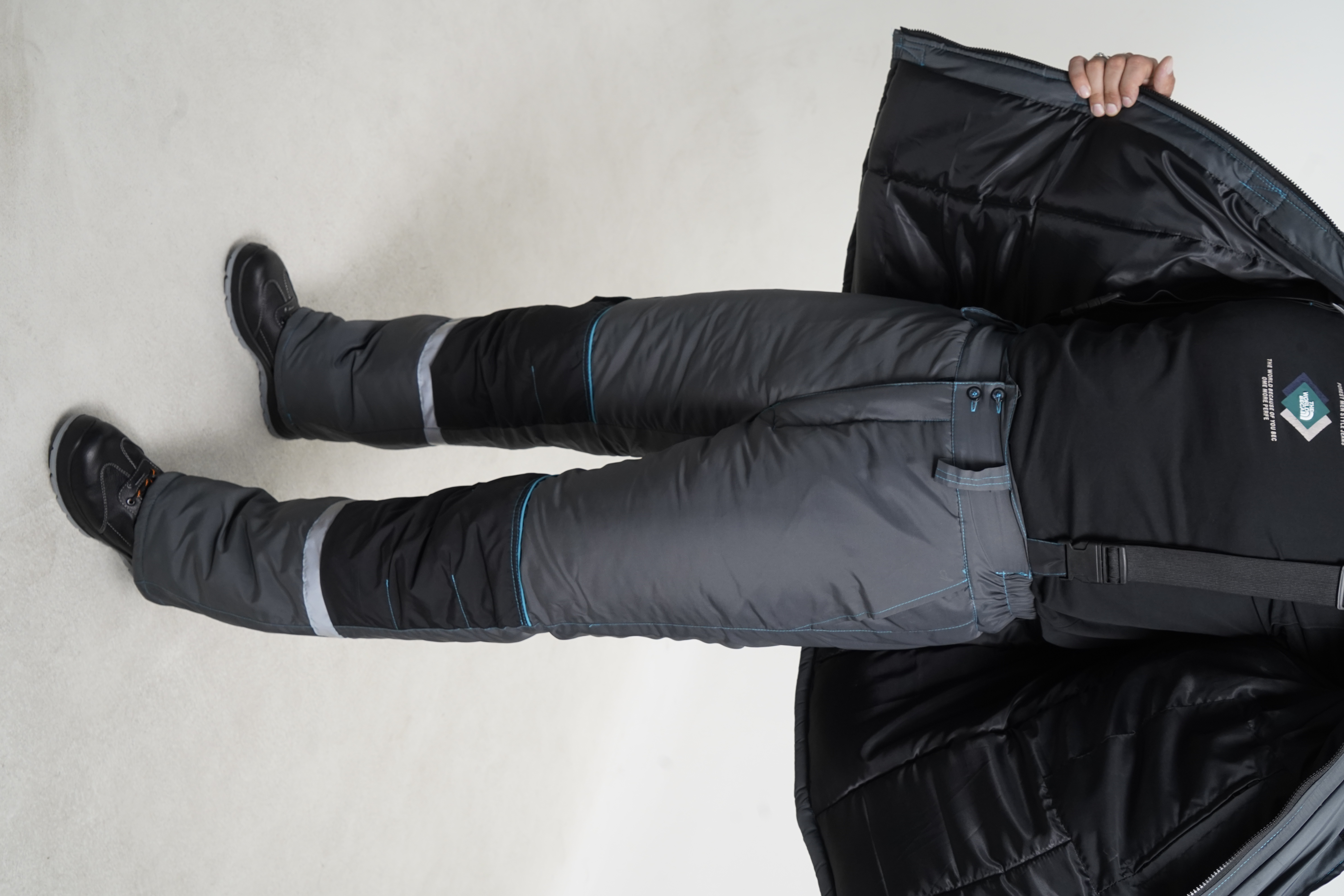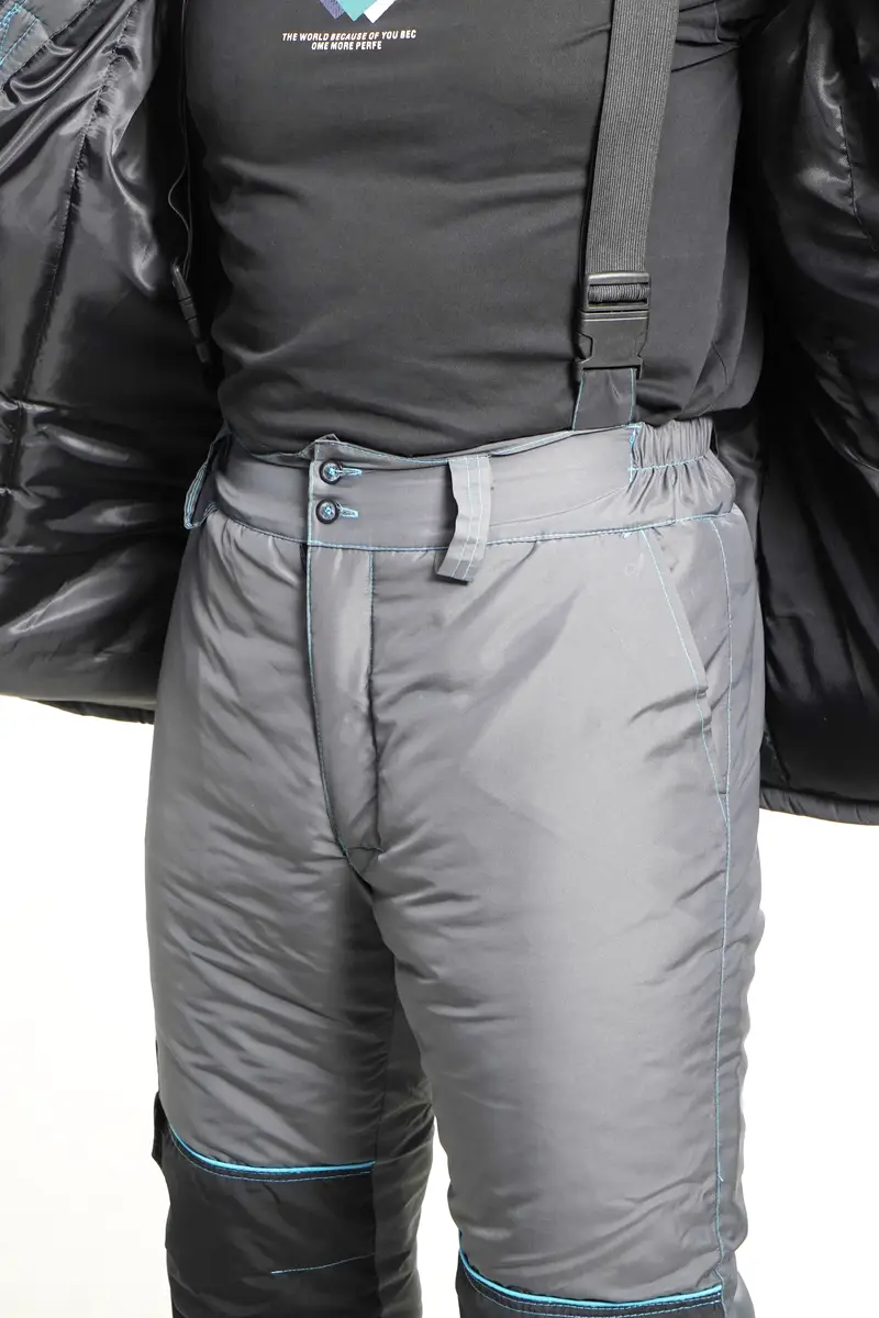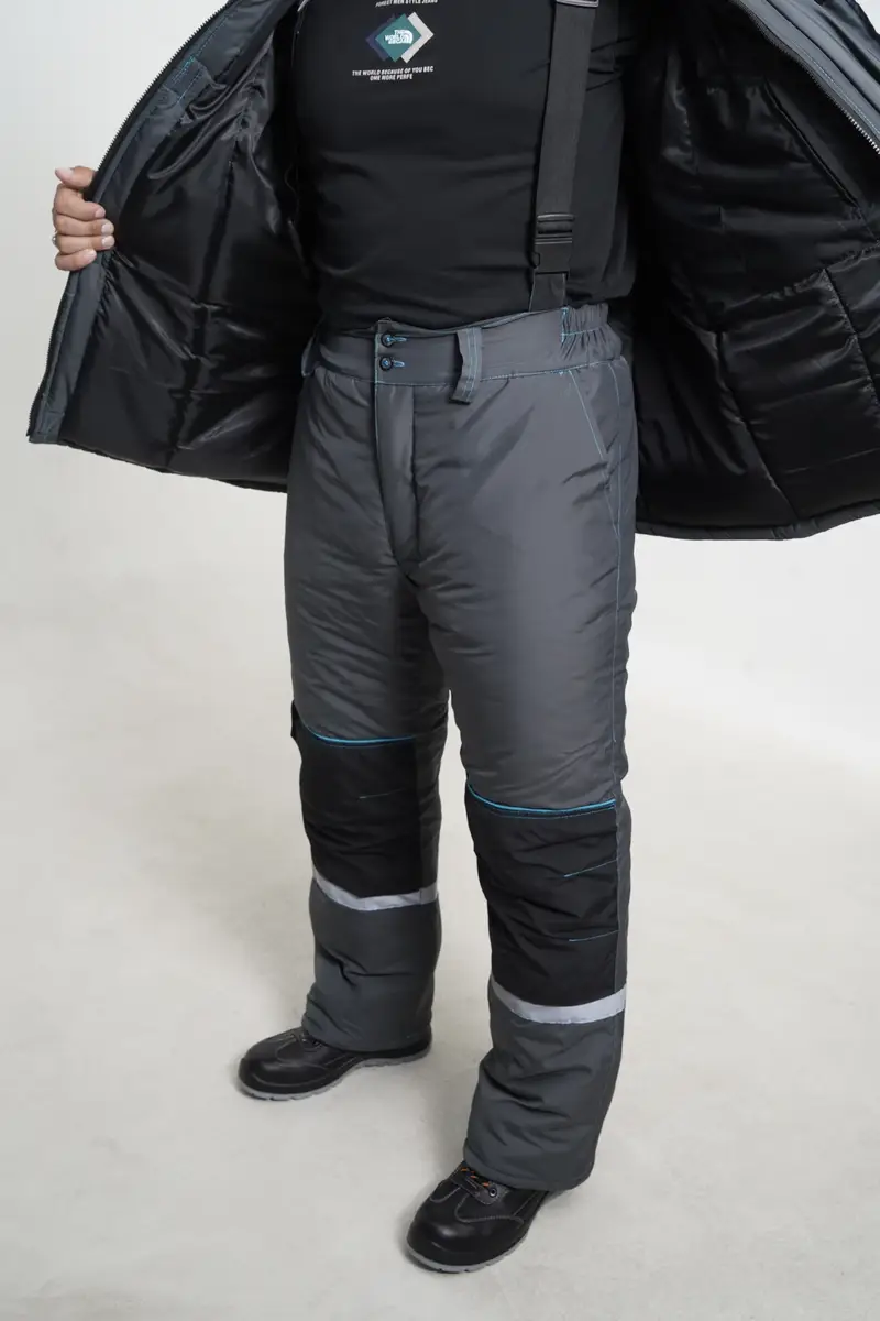 insulated trousers with an anatomical cut for knees and adjustable suspenders