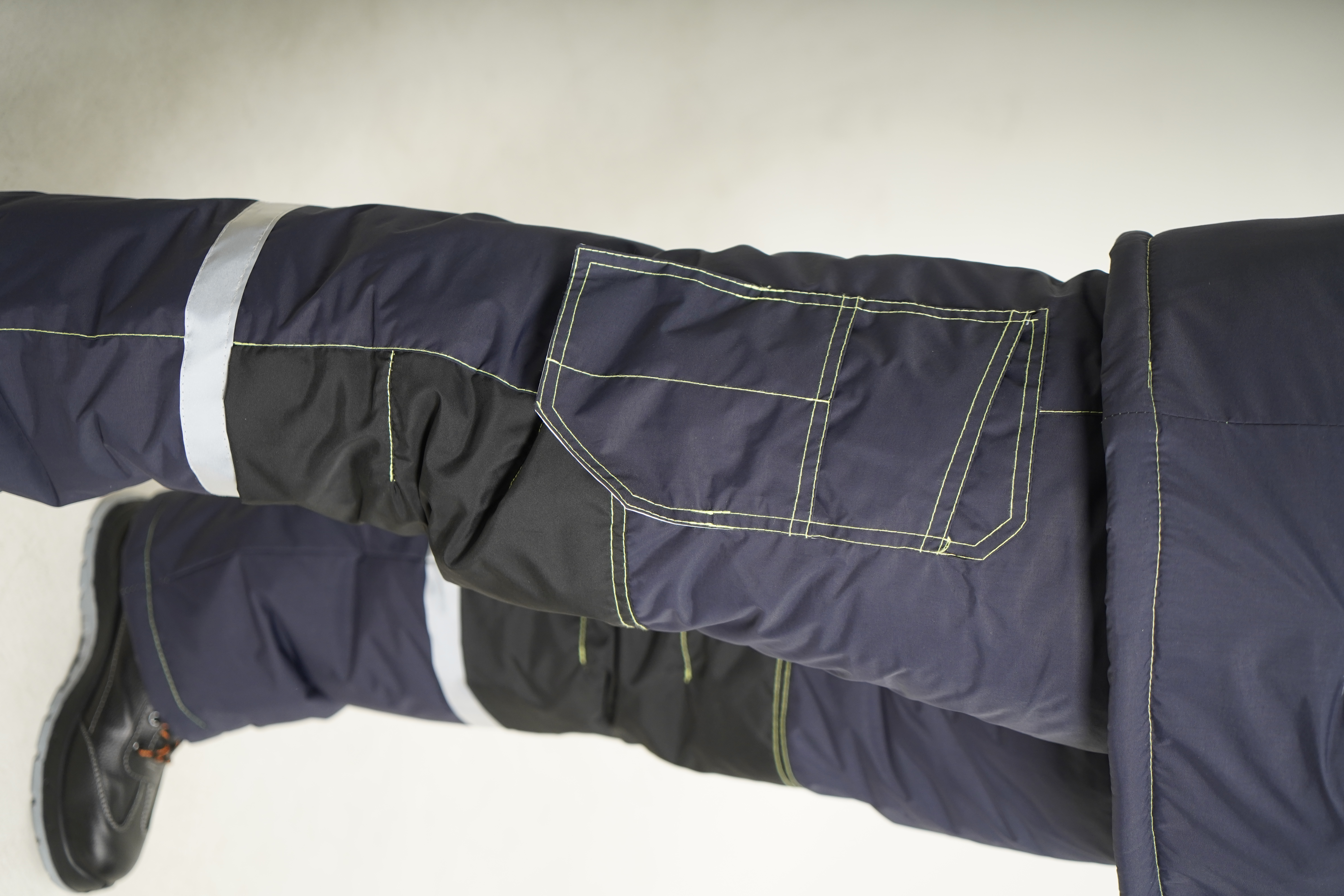 insulated trousers with an anatomical cut for knees and adjustable suspenders