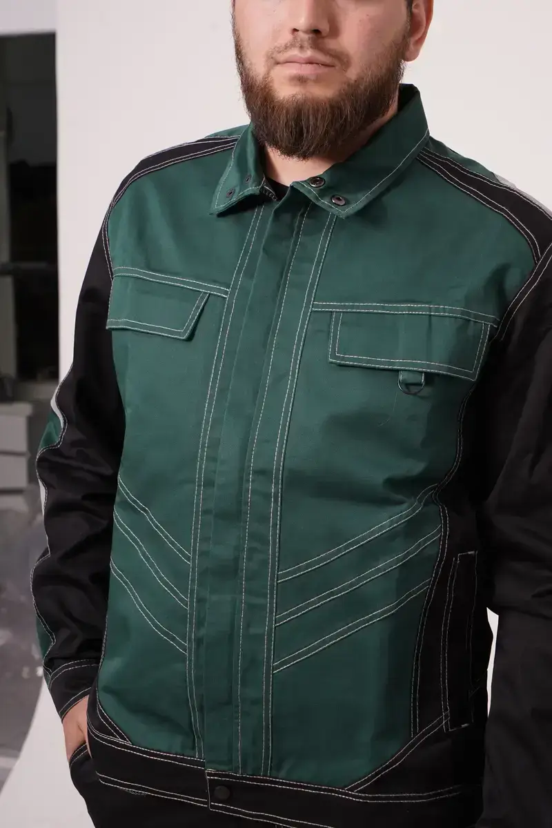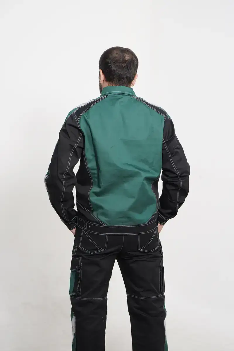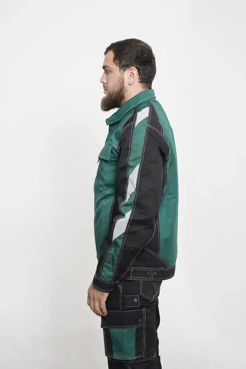Fabric: Leader fabric — durable blended twill fabric resistant to abrasion and mechanical stress. Provides strength, comfort, and a professional appearance.