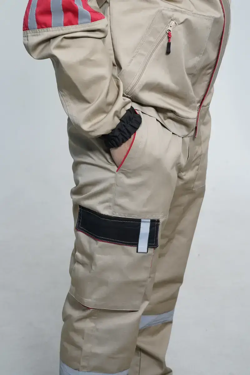 Fabric: Leader fabric — durable blended twill fabric resistant to abrasion and mechanical stress. Provides long-lasting wear, breathability, and shape stability.