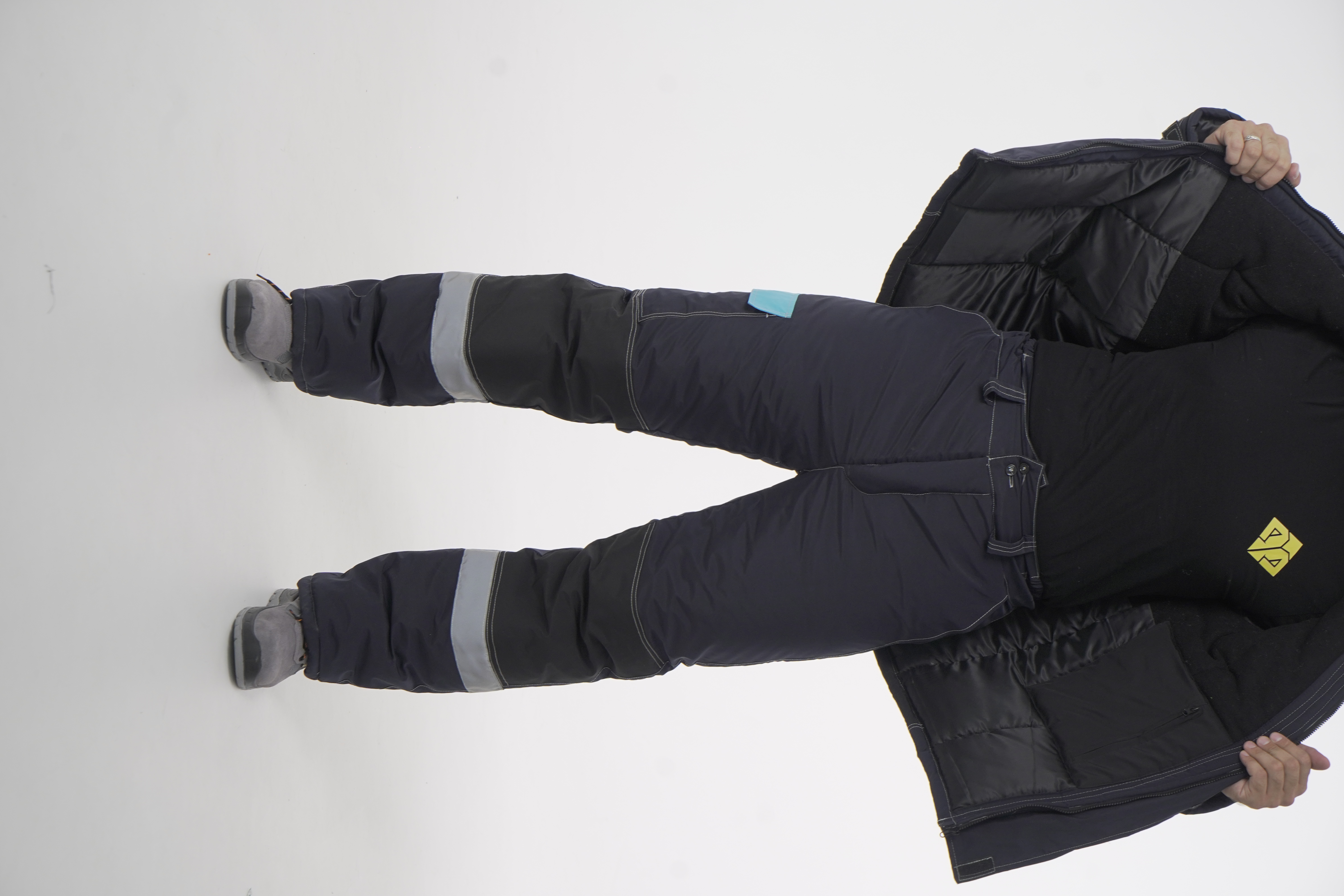 insulated trousers with an anatomical cut for knees and adjustable suspenders